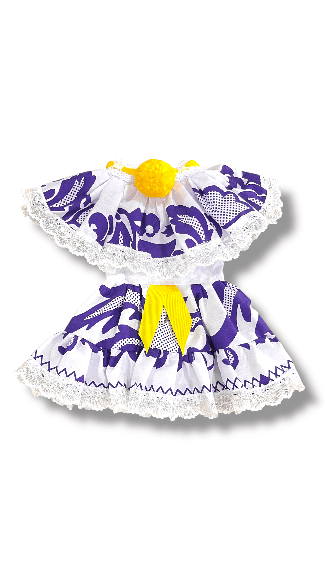 Pollera de Talco en Sombra Morada con Mota Amarilla