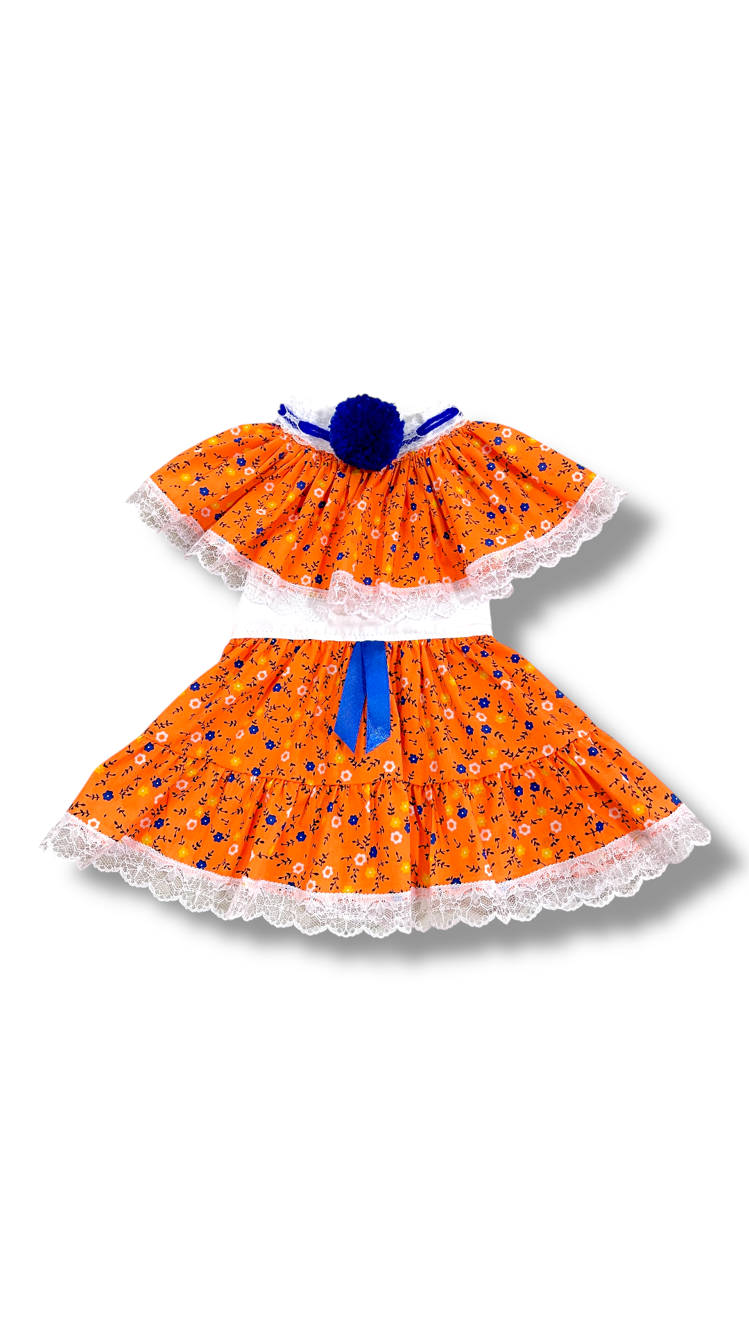 Pollera de Zaraza Naranja Neón con Mota Azul